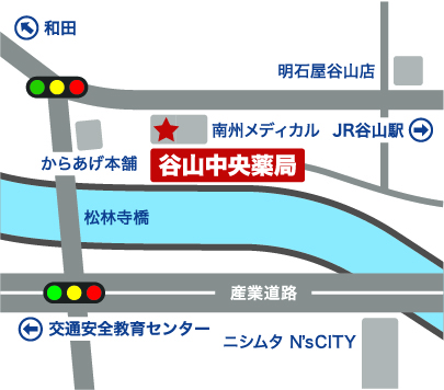 谷山地域にお住まいの方にとって、通勤やお出かけの途中にも立ち寄りやすい幹線道路沿いの薬局です。